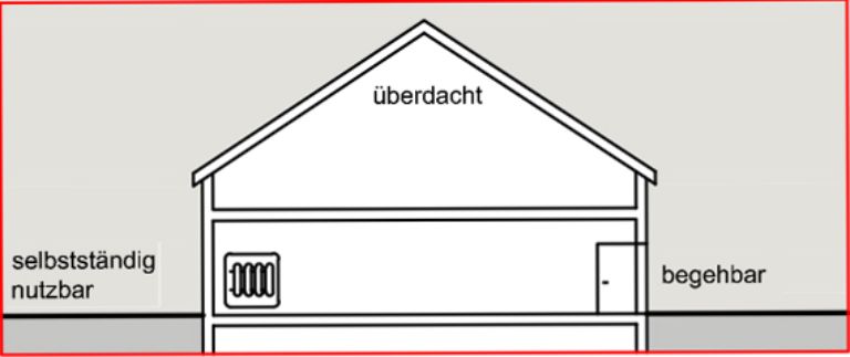 Hohlräume befinden sich zwischen der obersten Decke und der Bedachung. Aufenthaltsräume sind in ihnen nicht möglich.