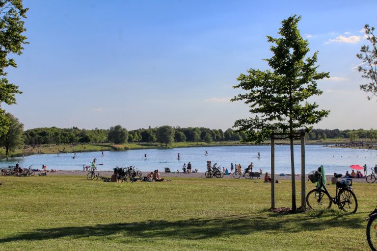 Um den Druck der Badegäste auf die empfindliche Staudenzone zu reduzieren wird für die anstehende Sommersaison der offizielle Liegebereich auf der Südseite des Sees nach Westen hin erweitert. Die gesamte Staudenzone (geneigte Fläche) bleibt jedoch weiterhin unter Schutz.