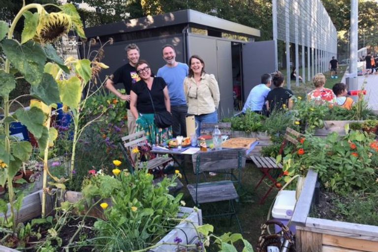 Und in diesem Jahr kam eine Gruppe von Bürgerinnen und Bürger auf uns zu die ein tolles Projekt hatten: Ihr Wunsch war ein Kleinstgarten mit Hochbeeten auf dem Gelände des Sportvereins 1906. Es war nicht einfach alle Genehmigungen zu bekommen, aber sie haben es geschafft und das ist dabei herausgekommen.