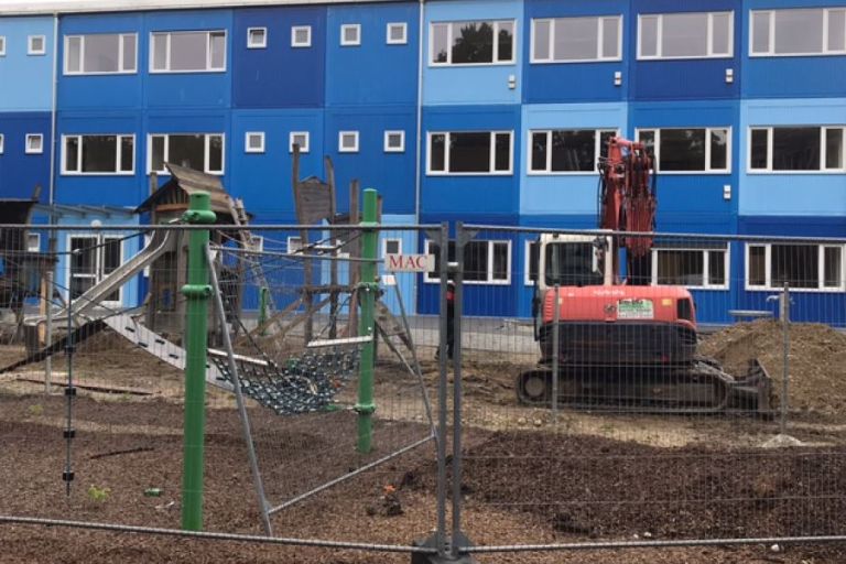 Die Container sind aufgestellt - der Abriss kann beginnen, die Bauarbeiten sind im vorgesehenen Zeitplan. Natürlich ist dieses Vorgehen für die Schulfamilie sehr schwierig. Alles muss für die Lehrkräfte und Schüler*innen geplant und vorbereitet werden. Vom Schulamt her wird natürlich alles versuchtes es den Betroffenen so angenehm wie möglich zu gestalten, damit ein einigermaßen ungestörter Unterricht abgehalten werden kann.