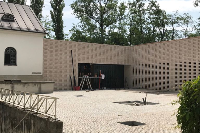 Dieser Neubau entsteht unmittelbar im Anschluss an die denkmalgeschützte Trauerhalle von Hans Grässel und fügt sich harmonisch in den Kontext der historischen Friedhofsanlage ein.