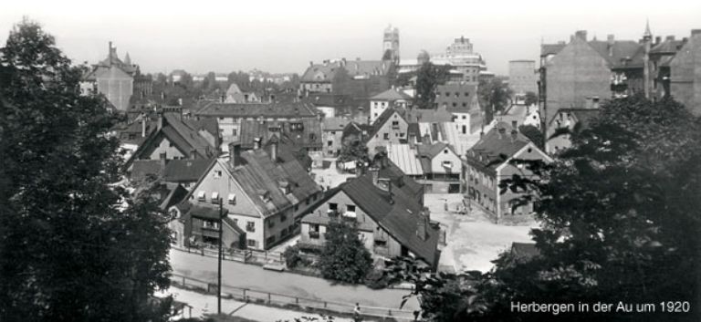 In späterer Zeit siedeln sich immer mehr kleinere Handwerker, Kleingewerbetreibende, Arbeiter und Tagelöhner vor den Toren der Stadt an. Aus dieser Zeit sind in der Au und in Haidhausen noch eine größere Zahl kleiner Herbergshäuser erhalten, die das Stadtbild in manchen Bereichen noch prägen. Sie erinnern von Ferne an die ärmlichen und beengten Lebens- und Arbeitsverhältnisse früherer Zeiten.