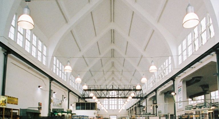 Die Großmarkthalle wurde 1912 nach dem Entwurf des Architekten Richard Schachner erbaut. Sie stellt nicht nur einen wichtigen Lebensmittelumschlagplatz, sondern auch ein architektonisches Zeugnis ihrer Zeit dar. Der Bau, der unter Denkmalschutz steht, wurde in zwei Phasen realisiert und in 1920er Jahren erweitert, da zu dieser Zeit München eine zentrale Rolle im deutschen Südfrüchtehandel spielte. Im Zweiten Weltkrieg wurden 80 Prozent des Gebäudes zerstört. Ab 1948 wurde die Halle wieder aufgebaut und besteht heute aus sechs verschiedenen Gebäudeteilen. Die Großmarkthalle ist im Stil der Reformarchitektur gebaut worden, die sich durch schlichte, funktionale Formen auszeichnet, traditionelle Bauweisen und Materialien bewahrt und sich von überladenen, historischen Stilen abwendet. Diese Merkmale machen die Großmarkthalle zu einem einzigartigen Zeugnis der Münchener Architekturgeschichte um 1910.