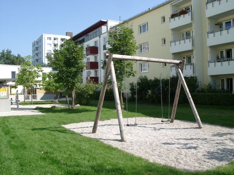 - Aufwertung des öffentlichen Grünzugs „Scharfreiter-/ Hohenschwangauplatz“ – auch hier wurden neue Nutzungsangebote für alle Altersgruppen und eine attraktive Wegeverbindung in Nord-Süd-Richtung geschaffen.