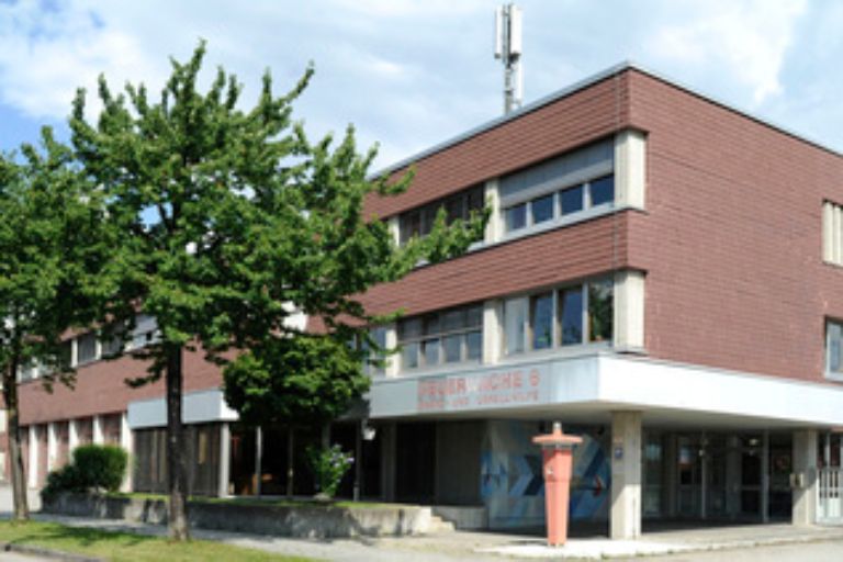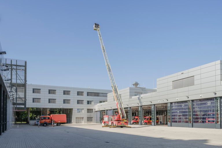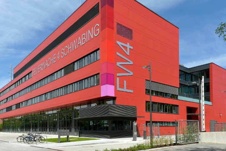 Die Feuerwache 5 liegt im Münchner Osten. Am 14. Oktober 2025 wurde die Wache nach acht Jahren Bauzeit feierlich eingeweiht .