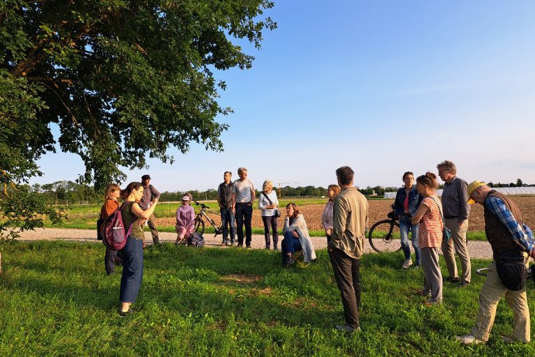 Bei einem zweistündigen Spaziergang am 6. August 2025 erläuterte Teresa Zölch vom Referat für Klima- und Umweltschutz an unterschiedlichen Orten im Landschaftspark West die Bedeutung des Landschaftsraums für das Stadtklima. Unter anderem ging es um Luftaustausch, die Entstehung von Kaltluft und klimatische Besonderheiten.