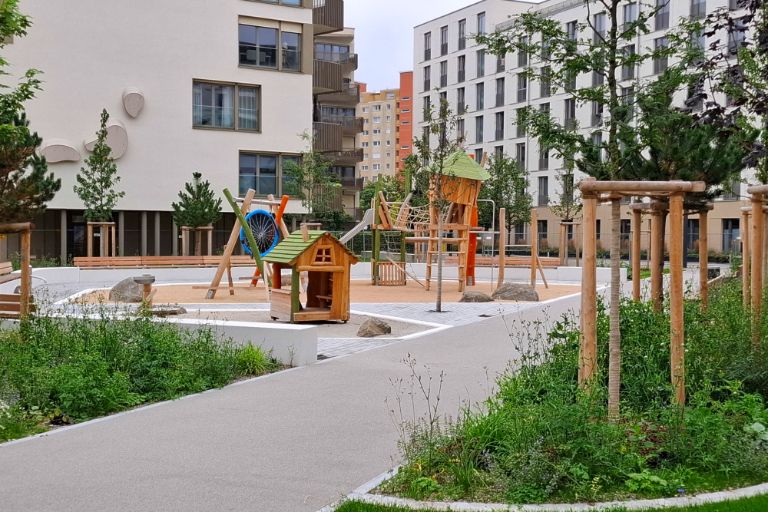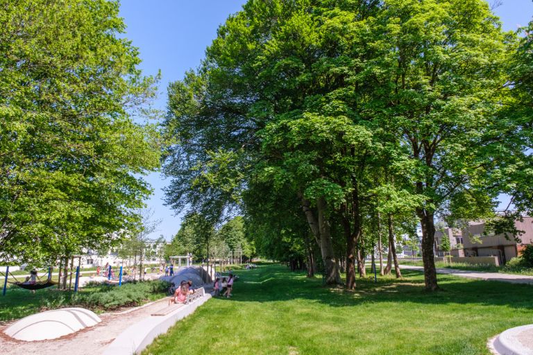 Die neu angelegten öffentlichen Grünflächen im Stadtquartier „Prinz-Eugen-Park“ bieten ein attraktives Angebot an Freizeitmöglichkeiten für alle Generationen.
