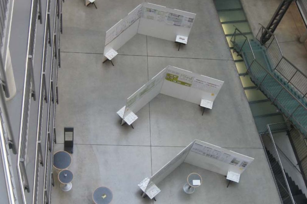 Schlichte Materialien wie das Leichtmetall der Fassade und der Sichtbeton der Wände und Decken verleihen dem Sitz des Baureferates den ihm angemessenen "Werkstatt-Charakter”. Eine freundliche Atmosphäre prägt das Betriebsrestaurant. Helle Holzfußböden und Blumen auf den runden Tischen empfangen den Gast. Von hier aus, aber auch von den Büros um den Innenhof, hat man einen Blick auf die Anlagen des integrierten Kindergartens und der Kinderkrippe. Man kann mitten in der Bürowelt den Alltag der Kinder erleben. Raumerlebnis und Platz für Veranstaltungen bietet die Halle an der Friedenstraße, die zu den Konferenzräumen überleitet.
