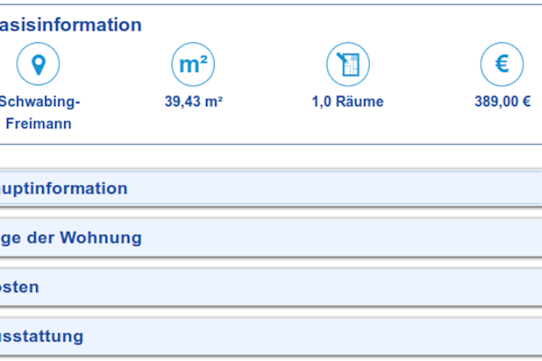 Wenn Sie auf ein Wohnungsangebot klicken, öffnen sich die Wohnungsangebots-Details. Hier sehen Sie alle Informationen zur Wohnung.