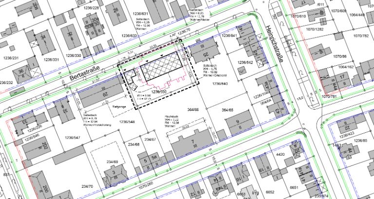 - Eigentümer*innen weiterer Grundstücke, die durch das Bauvorhaben in ihren schutzwürdigen Belangen beeinträchtigt werden können. Dies kann zum Beispiel der Fall sein, wenn die Abstandsfläche die Straßenmitte überschreitet oder wenn bei geringer Straßenbreite Tiefgaragenzufahrten die Bewohner*innen gegenüberliegender Gebäude beeinträchtigen könnten.