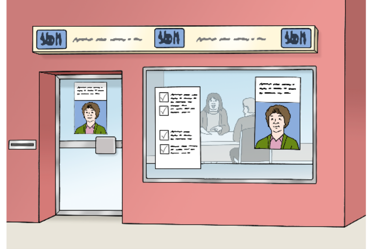 Die gezeichneten Bilder kommen von der © Lebenshilfe für Menschen mit geistiger Behinderung Bremen e.V., Illustrator Stefan Albers, Atelier Fleetinsel, 2013.