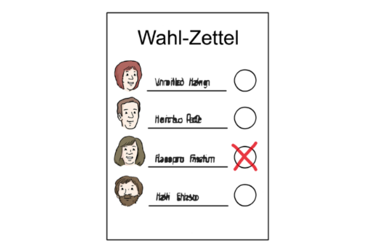 Auf dem Stimm-Zettel stehen Wahl-Vorschläge.
