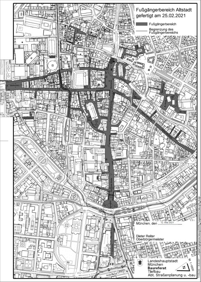 (1) Die Fußgängerbereiche umfassen die in dem beigefügten Lageplan (gefertigt vom Baureferat – Hauptabteilung Tiefbau am 25.02.2021, Maßstab: 1:5500, ausgefertigt am 12. Mai 2021) gekennzeichneten Flächen. Der Lageplan ist Bestandteil dieser Satzung.