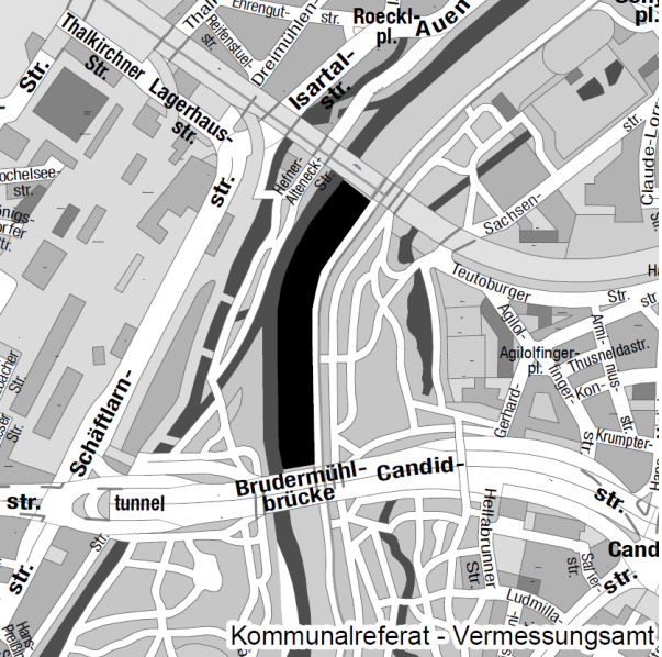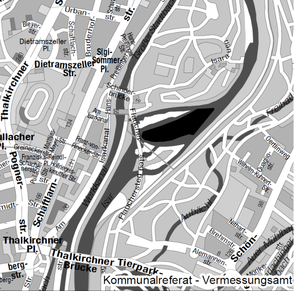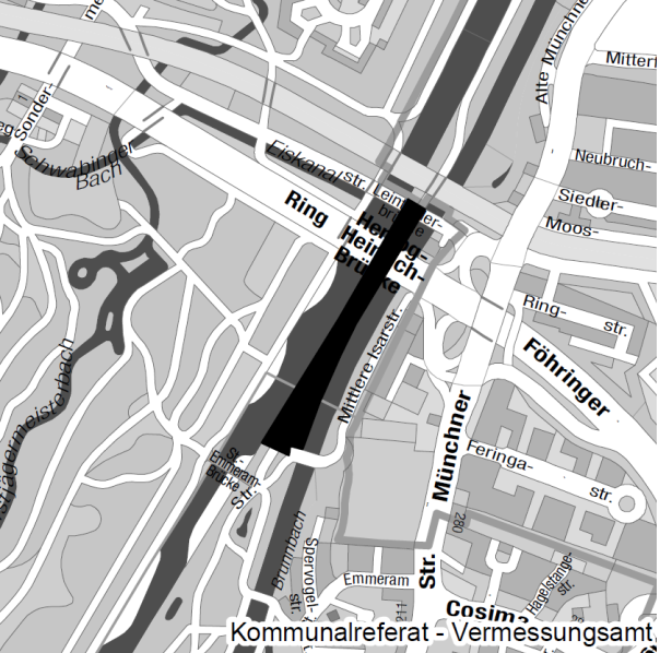 Mittlere-Isar-Straße und 100 m vor der Fußgängerbrücke zum Englischen Garten,