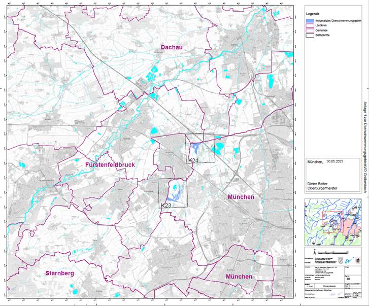 Maßstab 1: 25.000, ausgefertigt am 30. Mai 2023, die als Anlage 1 zur ÜgVO Gröbenbach Bestandteil dieser Verordnung ist und grob