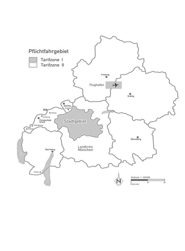 (3) 1Das Gebiet der Landeshauptstadt München sowie das Gelände des Flughafens München bilden die Tarifzone I, das übrige Pflichtfahrgebiet die Tarifzone II. 2Die Tarifzonen sind nachrichtlich in Anlage 2 zur Taxitarifordnung in Kartenform dargestellt.